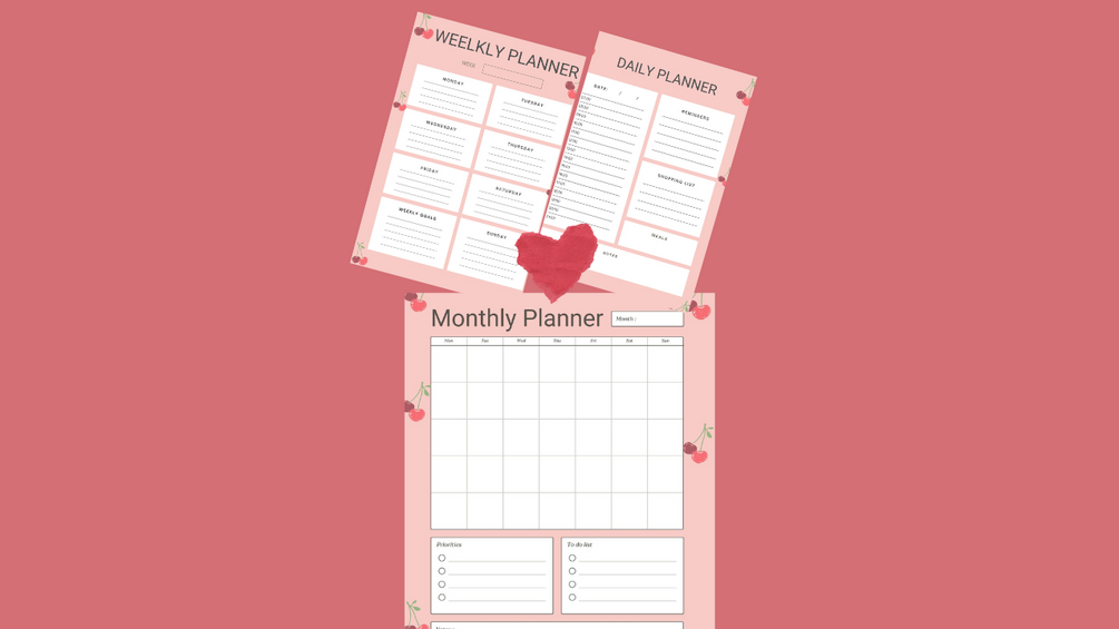 Stay organized and inspired with this beautifully designed printable planner set featuring soft pastel tones and charming cherry illustrations. Whether you're planning your day, your week, or your month, this A5-sized planner set is the perfect tool to help you stay on track and motivated throughout the year.