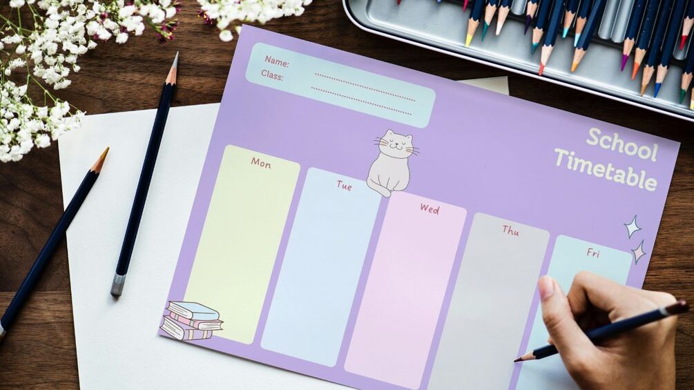 Kawaii Weekly School Timetable Planner - Cute Cat Design with Pastel Colors