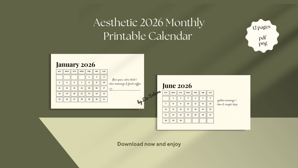 Transform your space and stay beautifully organized with this Aesthetic 2026 Monthly Printable Calendar by Liv Solara. Each month features a clean minimalist layout and soft neutral tones — the perfect wall decor for your home office, bedroom, kitchen, studio, or desk.