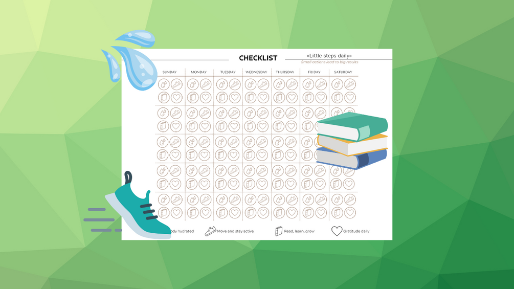 Perfect for staying consistent with your wellness goals, this minimalist checklist helps you track four essential habits every single day: